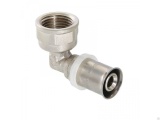 Угловой пресс-фитинг для подсоединения к металлопластиковым трубам (металлополимерные трубы) или трубам из сшитого полиэтилена компонента системы с резьбовым подключением. Резьба фитинга – внутренняя трубная по ГОСТу 6357.